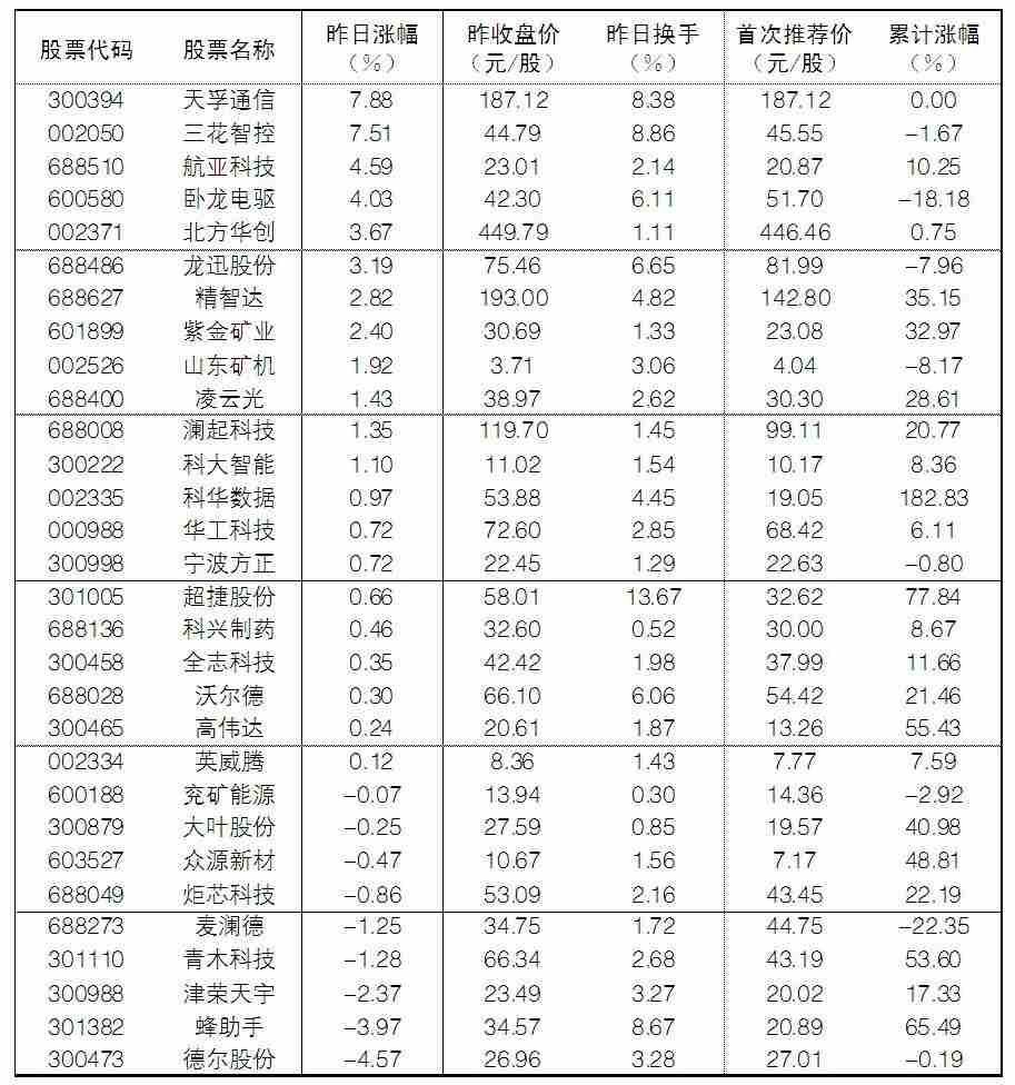 大众30指数成份股中,4日涨幅前五位的分别是三花智控、航亚科技、卧龙电驱、北方华创、龙迅股份,涨幅分别为7.51%、4.59%、4.03%、3.67%、3.19%;跌幅榜上,德尔股份、蜂助手、津荣天宇等跌幅居前。
